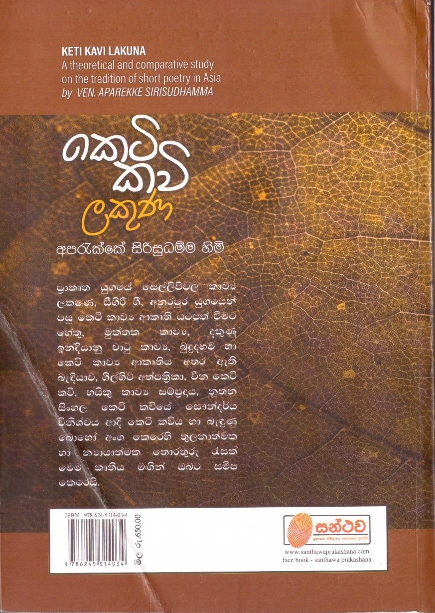 Keti Kavi Lakuna by Ven. Aparekke Sirisudhamma කෙටි කවි ලකුණ – පූජ්ය. අපරැක්කේ සිරිසුධම්ම