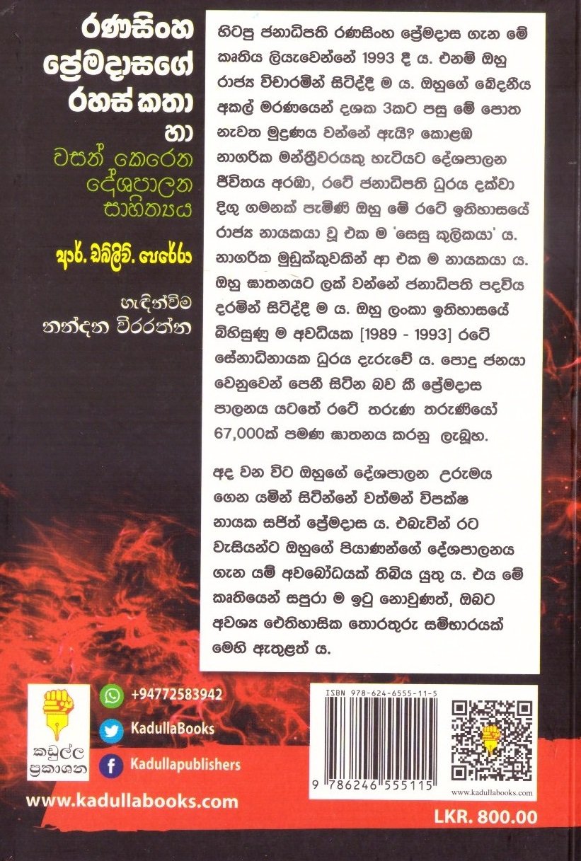 Ranasinghe Premadasage Rahas Katha By R.W.Perera රණසිංහ ප්රේමදාසගේ රහස් කතා -ආර්.ඩබ්.පෙරේරා