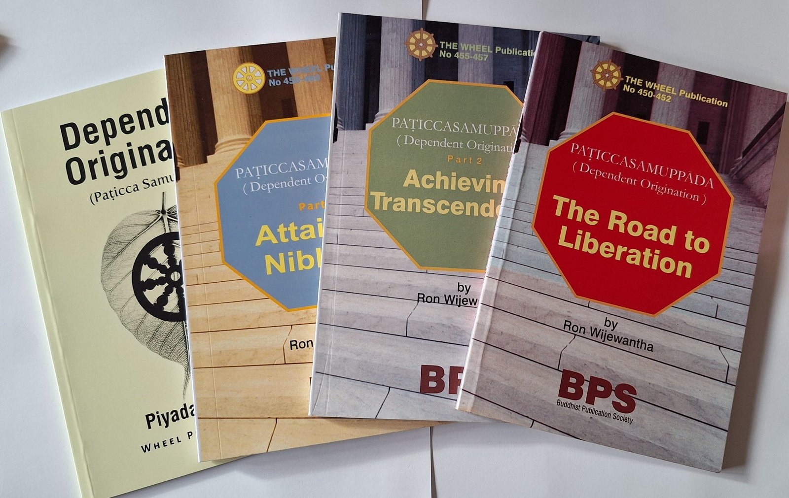Dependent Origination Set comprise of Road to Liberation, Attaining Nibbana, Achieving Transcendence; triology of Dependent Origination by Ron Wijewantha and Dependent Originaton by Piyadassi Thera. This set completes the a Dependent Origination Wheel Publications which focused on the pratical method of vipassana meditation.