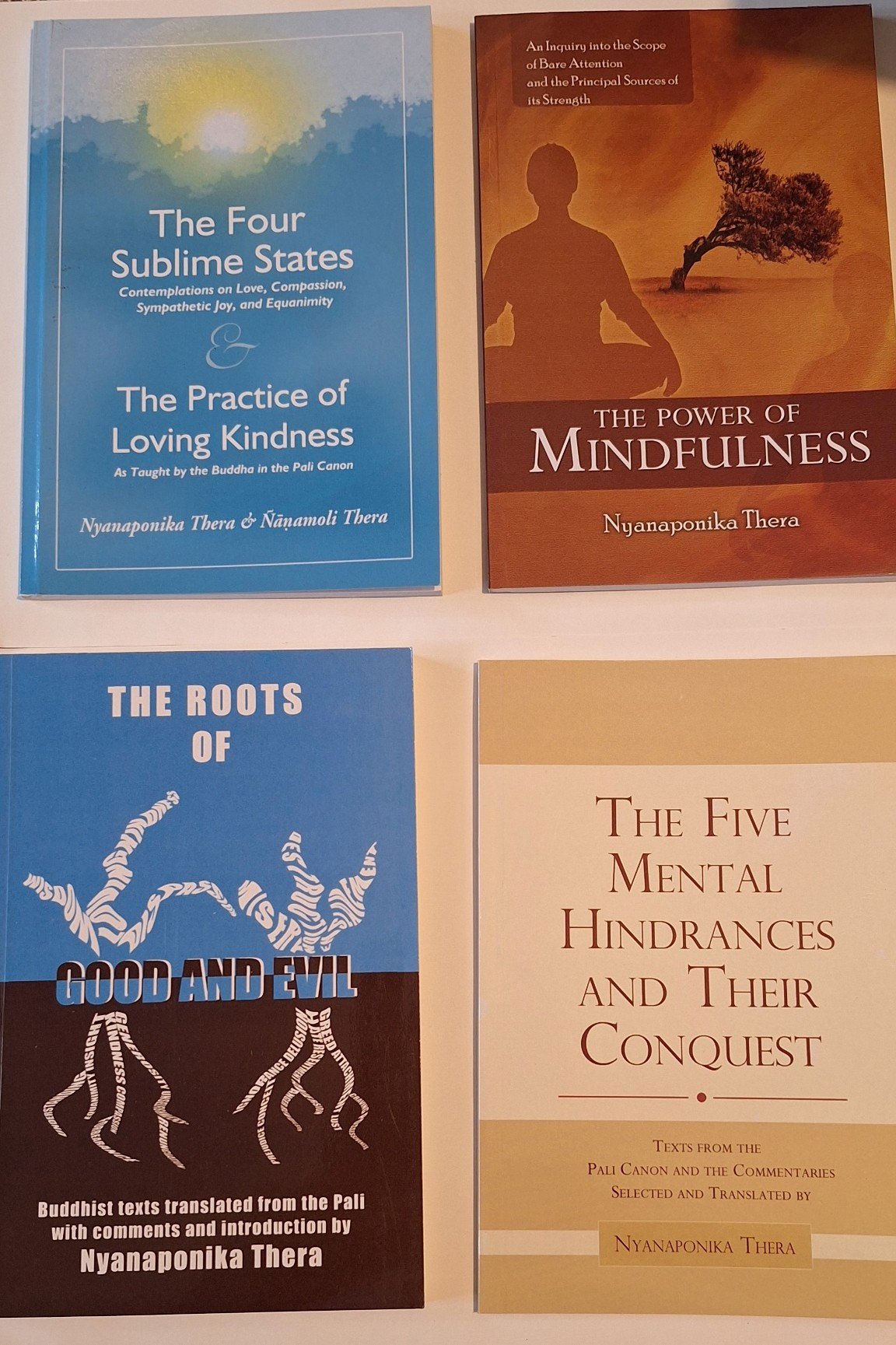 Essays of Nyanaponika Thera comprises The Four Sublime States And The Practice Of Loving Kindness As Taught By The Buddha In The Pali Canon, The Five Mental Hindrances And Their Conquest- Texts From The Pali Canon & Commentaries by Nyanaponika Thera, Roots Of Good And Evil – Sutta passages on the unwholesome and wholesome roots, with the author’s insightful comments and The Power Of Mindfullness – An Inquiry Into The Scope Of Bare Attention+Theprincipal Sources Of Its Strength.